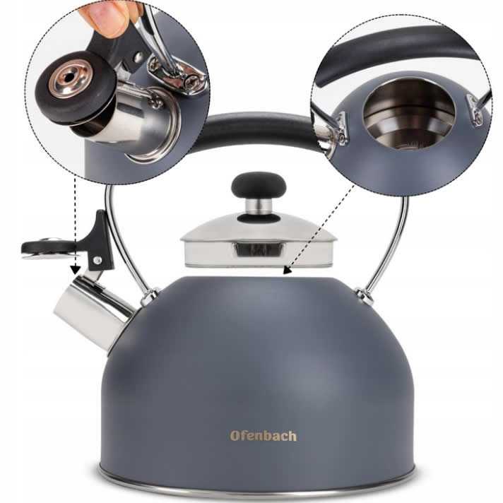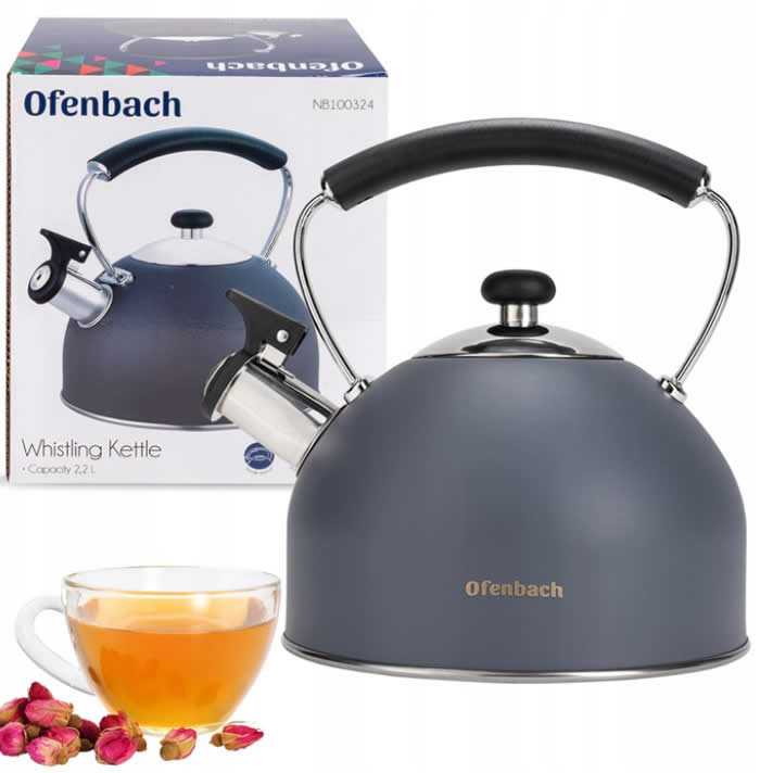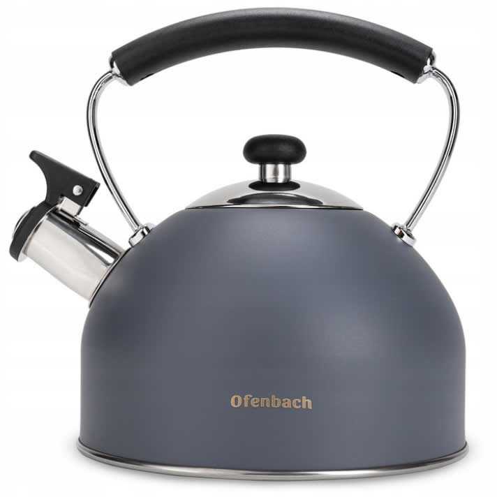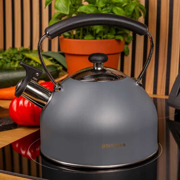 Elegantná kanvica Ofenbach z najnovšej dizajnovej rady spája moderný vzhľad s dokonalou funkčnosťou. Vyrobená z vysokokvalitnej nehrdzavejúcej ocele s pevne zabudovanou píšťalkou a bakelitovou rukoväťou je ideálnym pomocníkom do každej kuchyne.Má funkčný a nezahrievajúci sa bakelitový držiak, ktorý sa bude stabilne držať v ruke.