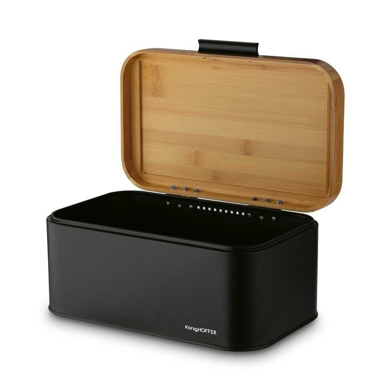 Stabilná oceľová konštrukcia chráni čerstvosť, chrumkavosť a vôňu pečiva. Bambusová pokrievka s úchytom umožňuje jednoduchý prístup.