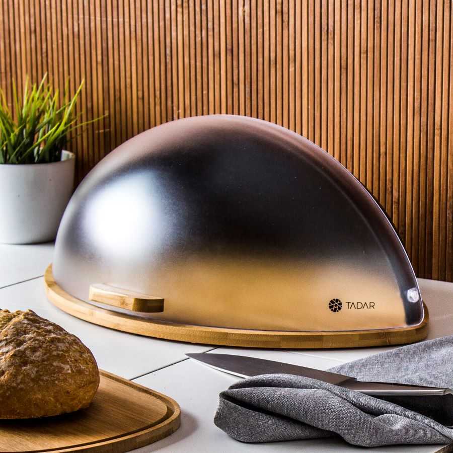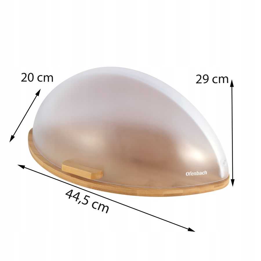 Chlebník má inovatívny, efektívnejší tvar. Priesvitný matný poťah dokonale zapadá do rovnomerného bieleho zadného panelu. Je to skvelý doplnok k modernej kuchyni. Kryt a zadná stena sú vyrobené z odolného plastu, ktorý sa veľmi ľahko udržuje v čistote. Uzavretím sa chráni jeho obsah pred vyschnutím, takže chlieb zostane aj nasledujúci deň čerstvý. Bambusová drevená základňa je vynikajúca na rezanie. Môžu sa nej pohodlne nakrájať krajce chleba, bagety alebo sendviče, bez toho aby bolo potrebné hľadať ďalšiu dosku. Zároveň má aj protišmykové nožičky. Celý chlebník je štýlovou, estetickou a praktickou kombináciou, ktorá sa stane zároveň aj dekoráciou kuchyne.