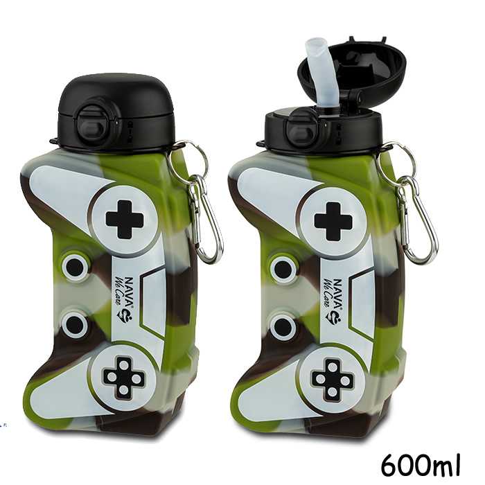 Detská fľaša NAVA, silikónová fľaša na vodu, 600 ml vložka so slamkou