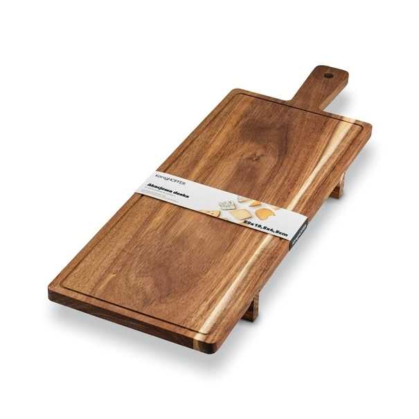 Táto dlhá hrubá doska na krájanie je vyrobená z krásne štruktúrovaného akáciového dreva . Je tvrdá, má sýtu farbu a je ideálna do náročných kuchynských priestorov .Vďaka impregnácii je táto doska na krájanie trvalo odolná voči vlhkosti. Okrem toho, že slúži ako doska na krájanie, jej povrch sa dá použiť na servírovanie teplých alebo studených predjedál.