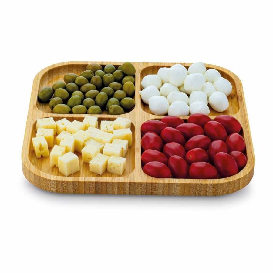 Drevený delený tanier Tadar 25 x 25 x 1,6 cm – bambusový tanier na občerstvenie