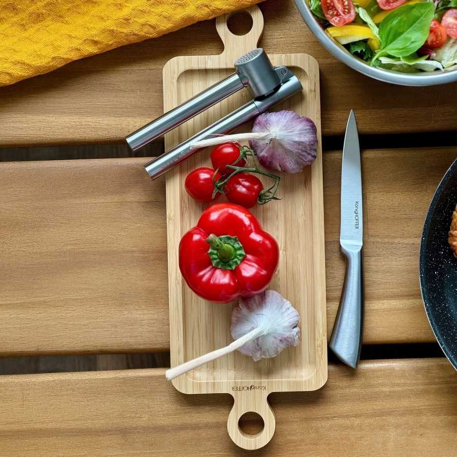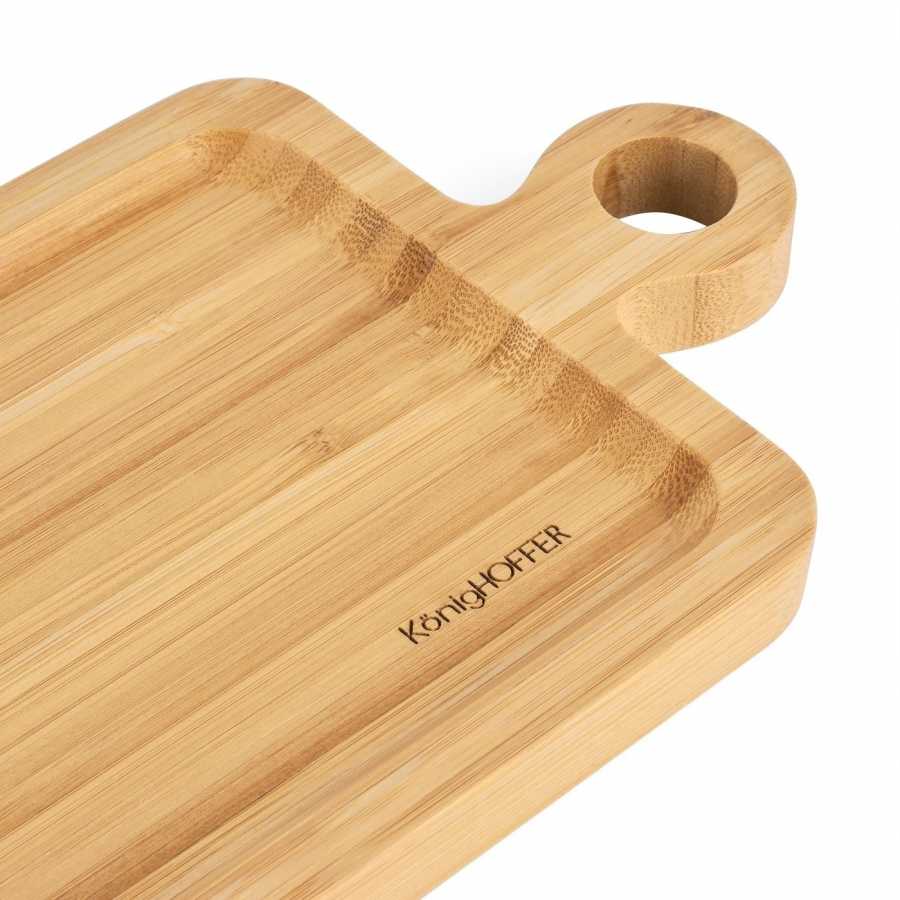 Táto doska je dlhá a úzka so zvýšeným okrajom. Ideálne sa hodí ako tácka alebo podnos na servírovanie. Efektívne na nej predložíte pečivo, roládu, syry, údeniny, zeleninu alebo placky. Všetko to vyzerá esteticky a štýlovo.