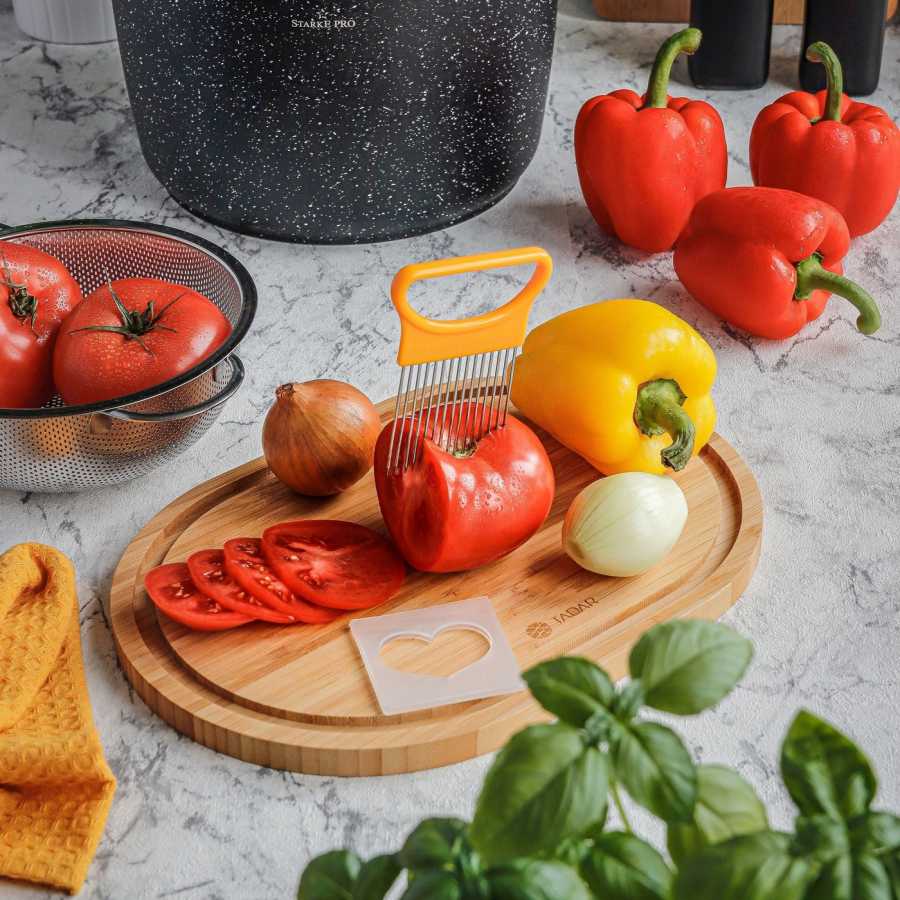 Oválny tvar dosky spolu s drážkami po stranách zabráni odkvapkávaniu štiav na stôl počas rezania. Samotná doska na krájanie sa tiež ľahko čistí, pretože neabsorbuje pachy a zmeny farby. Na dosku je možné tiež položiť teplé jedlá. Je vyrobená z prírodných materiálov, je úplne biologicky odbúrateľná a zapadá do trendu ekologickej kuchyne.