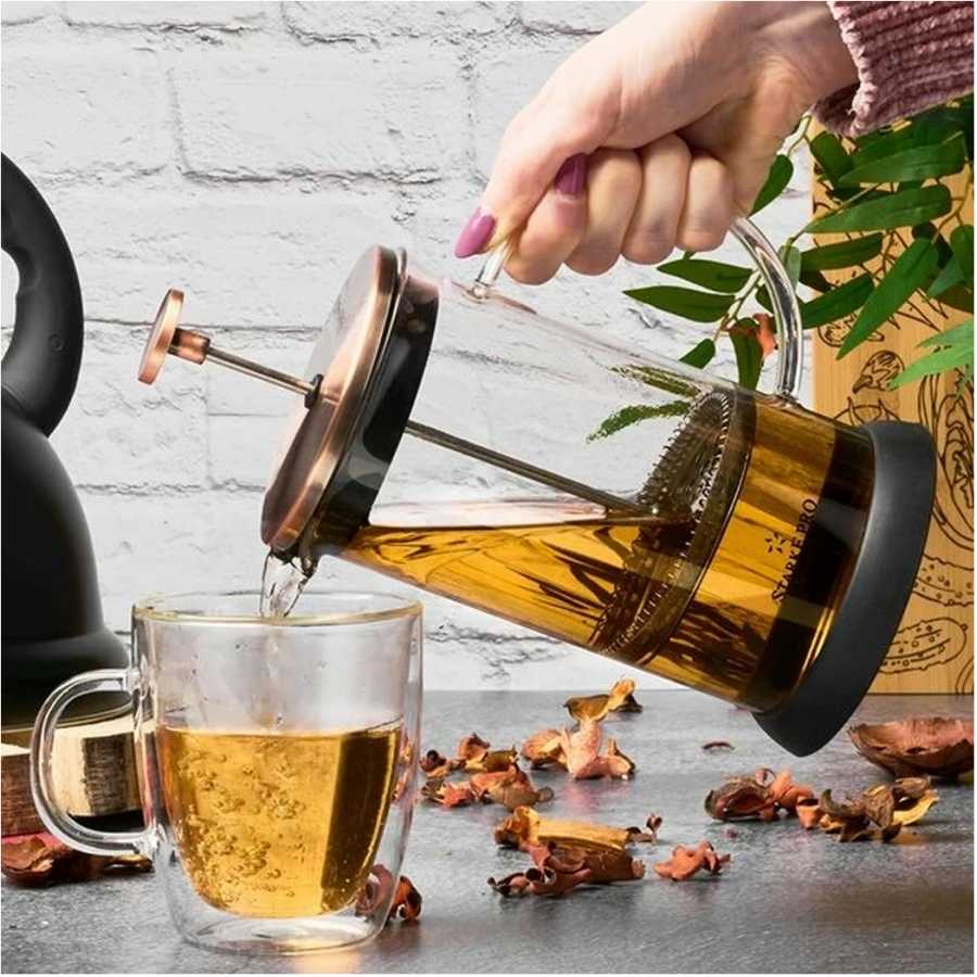 French press 1 l Starke Pro Harper umožní pripraviť skutočne aromatický a esenciálne kvalitný čaj alebo kávu jednoduchou a populárnou metódou. Vďaka tomu bude vaša káva krištáľovo čistá. Budete ju piť s väčším potešením. A ešte aj zaujme svojim moderným medeno - zlatým dizajnom.
