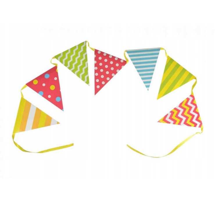 Viacfarebná papierová girlanda s veselými vlajkami pre dokonalú párty výzdobu.
