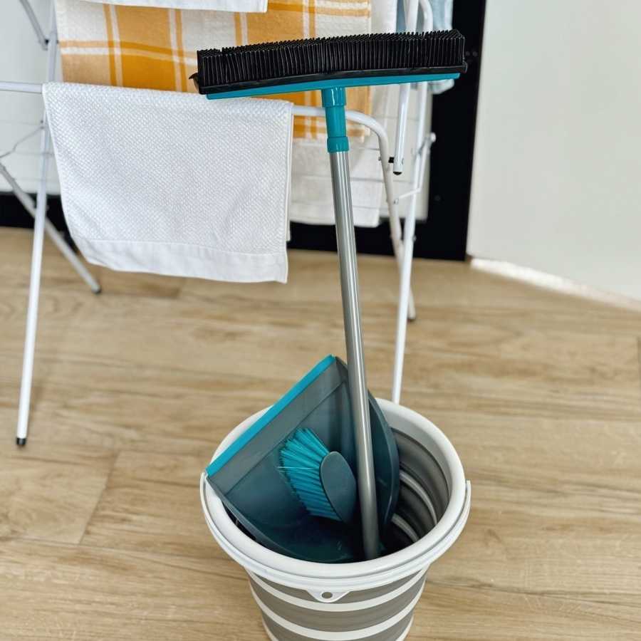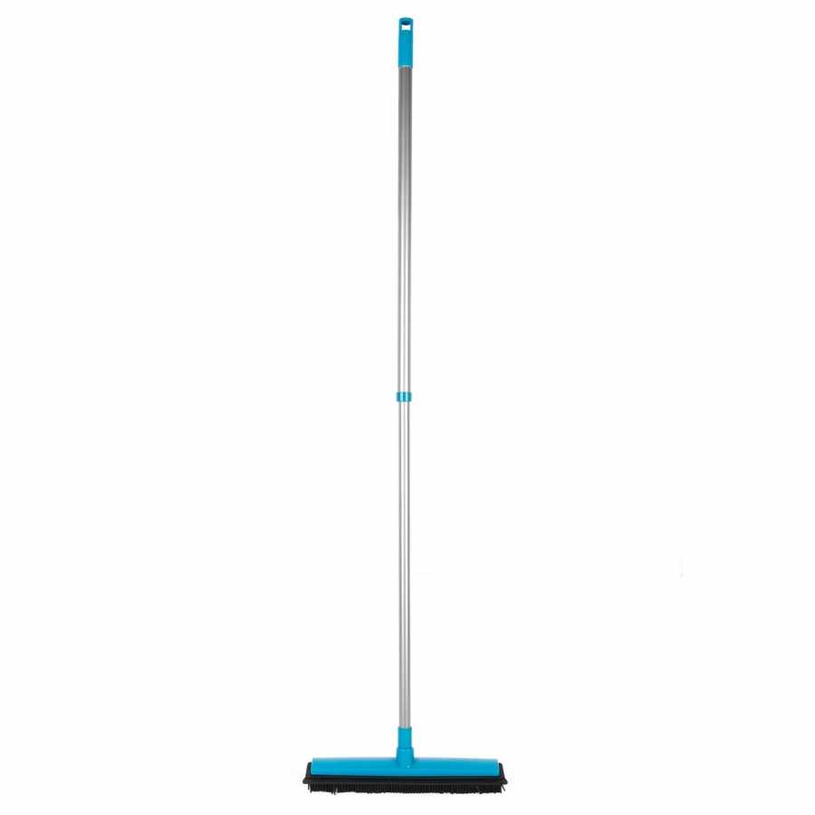 Antistatická gumová metla efektívne zametá srsť, vlasy a popol bez vzbienia prachu. Široká stierka s teleskopovou kovovou tyčou (68-120 cm) slúži aj na utieranie vody z podlahy či okien.