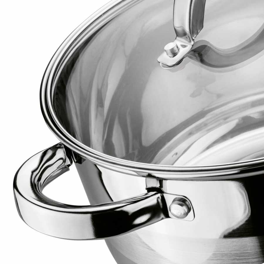 Veko z tvrdeného skla umožňuje ľahkú kontrolu varených jedál bez nutnosti ich dvíhania a ergonomické úchytky zaisťujú pohodlné používanie. Hrniec je odolný voči vysokým teplotám a ľahko sa čistí, čo z neho robí praktický doplnok do každej kuchyne.