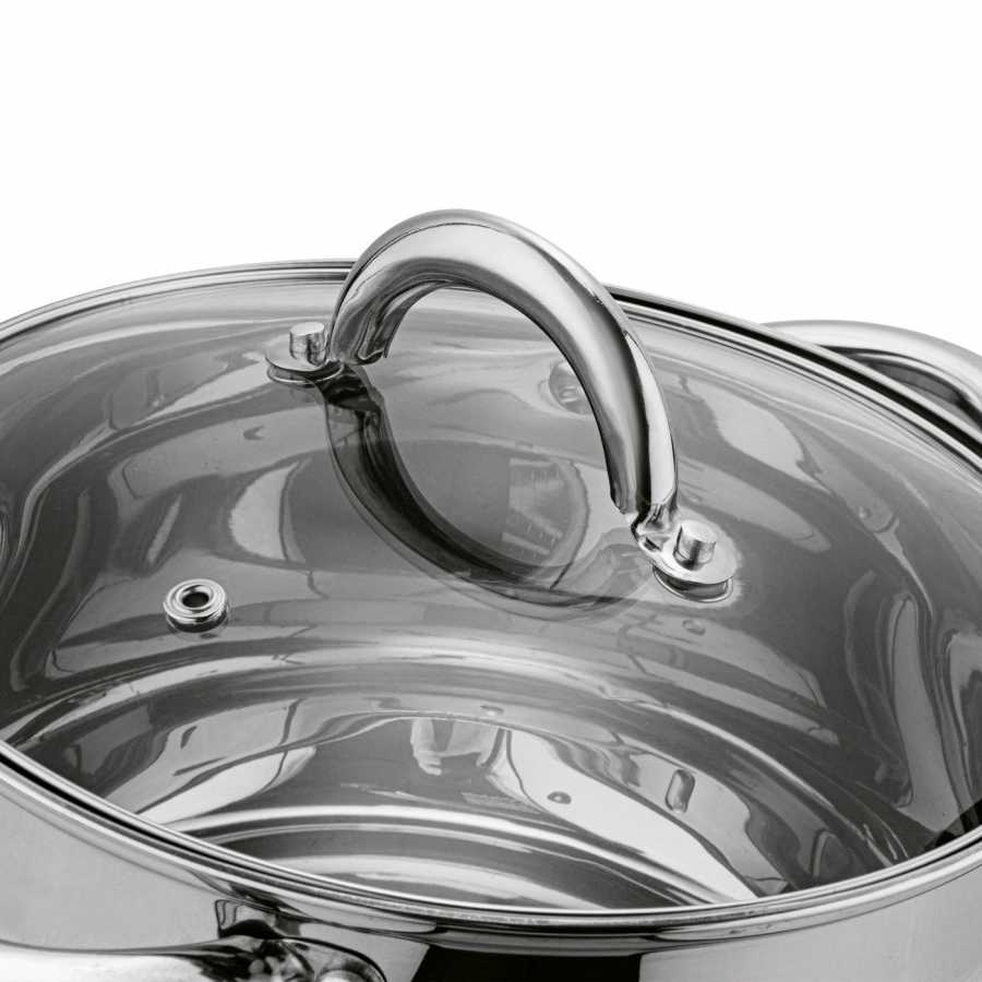 Tento jedinečný hrniec bol vyrobený z vysoko kvalitných materiálov, čo zaručuje nielen štýlový vzhľad, ale aj trvanlivosť na dlhé roky. Ideálny ako na každodenné jedlá, tak aj na väčšie oslavy, kde je potrebná veľká kapacita. Vďaka tesnému krytu zostanú všetky chute a arómy vo vnútri, čo ovplyvní vynikajúcu chuť vašich jedál! Parametre nerezového hrnca Objem 1,2 l Prečo kúpiť nerezový hrniec Elegantný nerezový hrniec ideálny pre moderné kuchyne ponúka odolnosť a dlhú životnosť.Vybavený pokrievkou zo skla s nerezovým okrajom .Perfektný na polievky, omáčky či varenie obilnín – univerzálny pomocník v každodennom varení.Vhodný na všetky typy sporákov vrátane indukcie.Odolný voči korózii, vhodný do umývačky, mikrovlnky nie.
