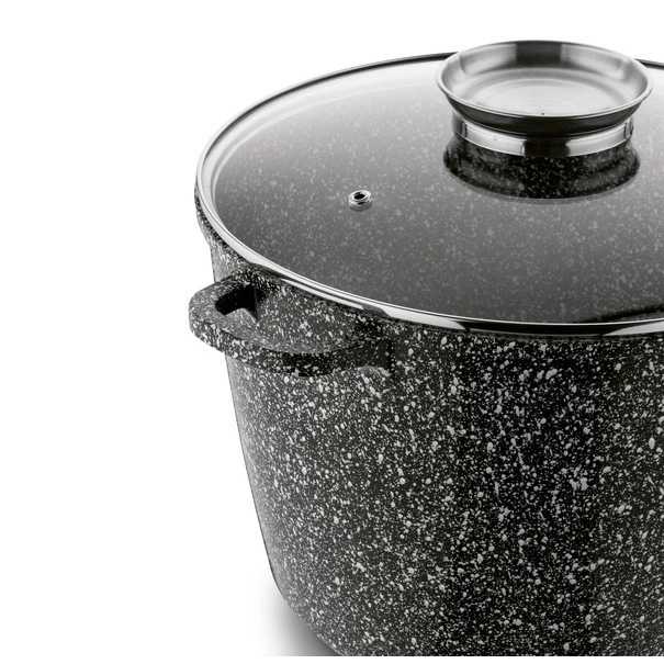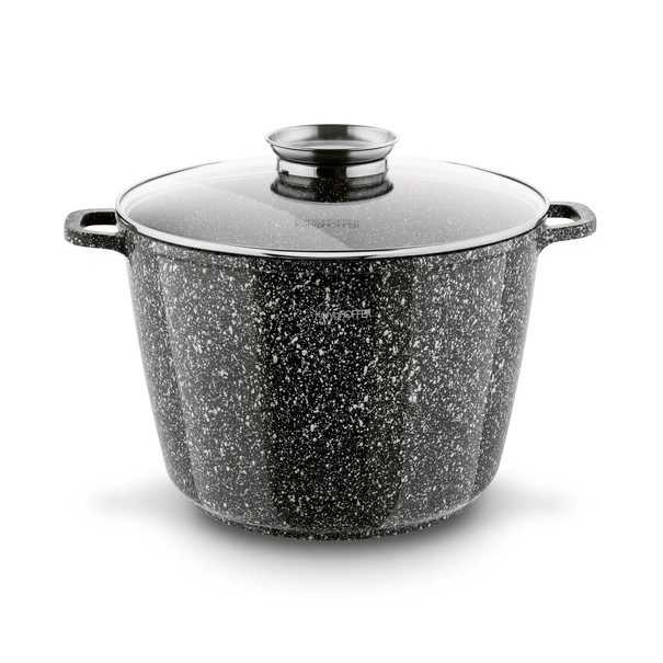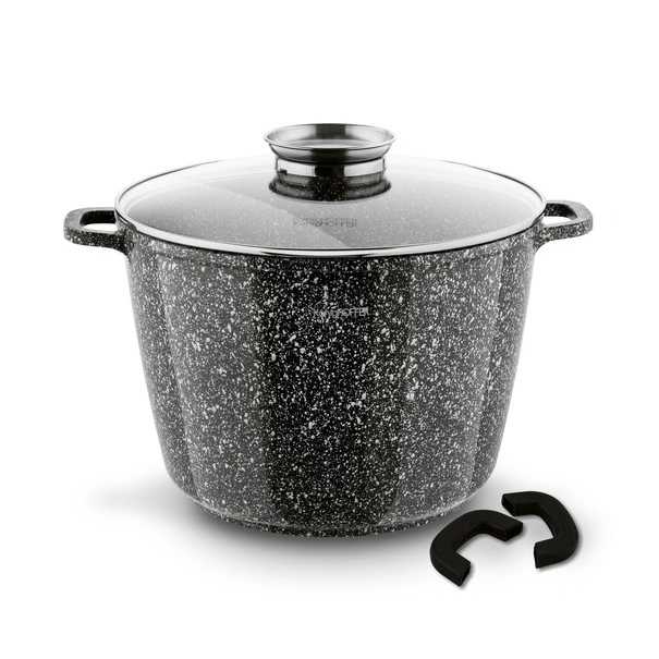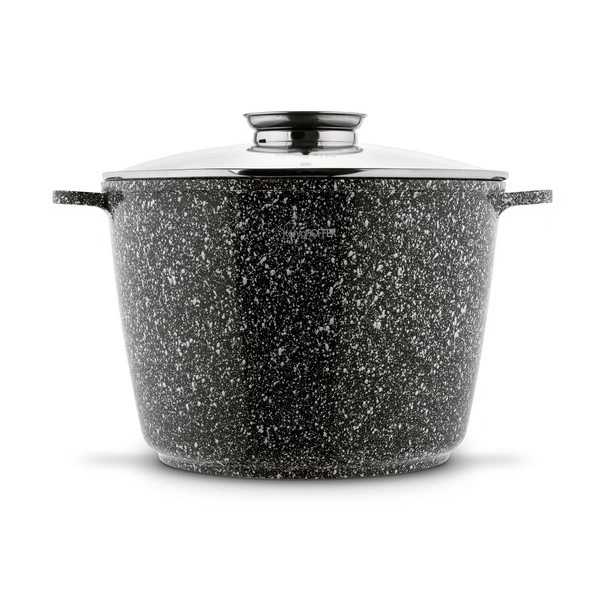 Pripravíte chutné a zdravé jedlá rýchlejšie než kedy predtým. Keramický povrch typu stone zabraňuje prilepeniu a pripáleniu jedál a výrazne predlžuje životnosť hrnca – vydrží až päťkrát dlhšie ako klasické nepriľnavé hrnce, teda až 10 000 cyklov opotrebovania, čo výrazne uľahčuje údržbu.Dno vysokého hrnca Kingstone, štýlovo tvarované ako žula, je vybavené indukčným diskem, ktorý rovnomerne a rýchlo ohrieva varnú plochu. Produkt má tak energeticky úspornú konštrukciu. Môžete v ňom variť na všetkých typoch varných dosiek (indukcia, plyn, elektrika, keramika) a dokonca aj smažiť s použitím len minimálneho množstva tuku.Produkt je bezpečný pre zdravie aj životné prostredie. Keramický povrch neobsahuje škodlivé látky a nemení chuť ani arómu jedál. Veľký keramický hrniec Kingstone s objemom 14 l je navyše vyrobený technológiou die cast – je z liateho hliníka so zvýšenou odolnosťou napríklad voči vysokým teplotám. To umožňuje zapekať v rúre, avšak bez pokrievky a pri maximálnej teplote 220 °C.