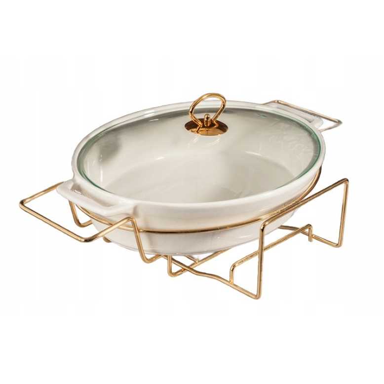 Ideálna na zapekané jedlá, mäso, zeleninu aj jedlá z jedného hrnca.Ohrievač- zlatý podstavec, do ktorého je možné umiestniť sviečky alebo liehové sviece, vďaka čomu si jedlo dlhšie udrží svoju teplotu.Dizajn- hladký povrch, jednoduchá údržba a univerzálny vzhľad vhodný ku každej stolovej súprave.Využitie-do rúry, na stôl aj do bufetu.Je ideálna na servírovanie teplých jedál bez obáv z ich vychladnutia. Skvele sa hodí na sviatky, oslavy aj každodenné stolovanie, pričom zabezpečí pohodlie aj estetické podanie.