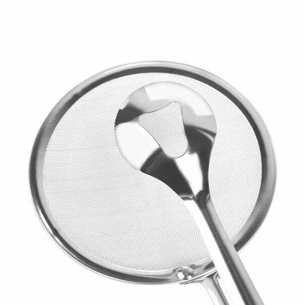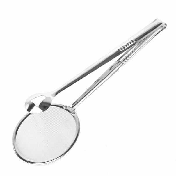 Kliešte so sitkom na mäso ,šišky a hranolky,pozostávajú z dvoch rozdielnych koncov. Jeden presne uchopí jedlo, druhý je sitko, ktoré účinne odsaje jedlo z oleja. Vďaka tomu môžete jesť zdravšie a menej kalorické pokrmy.Konštrukcia z nehrdzavejúcej ocele zaisťuje odolnosť.