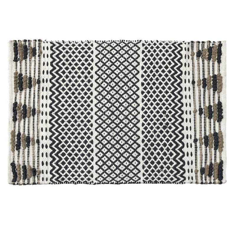 Koberec FIBRA je jedinečnou kombináciou čiernej, bielej a jemných akcentov v odtieňoch hnedej, ktoré mu dodávajú prirodzený, no zároveň elegantný charakter. Geometrické vzory a trojrozmerná textúra robia z tohto koberca nielen praktický, ale aj dekoratívny prvok interiéru. Je ideálny do obývacích izieb, spální, chodieb alebo kúpeľní, kde dodá teplo a moderný štýl. Je vyrobený z odolných materiálov, takže sa ľahko udržiava – je možné ho prať v práčke na šetrnom programe, vďaka čomu je mimoriadne praktickou voľbou na každodenné použitie. Tento koberec kombinuje funkčnosť s módnym dizajnom.