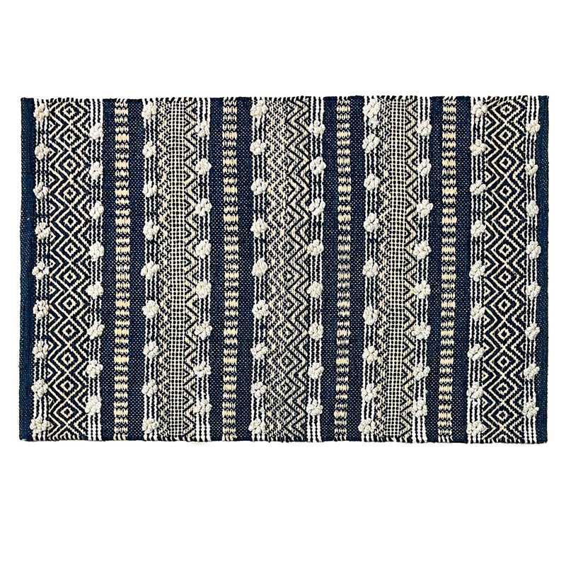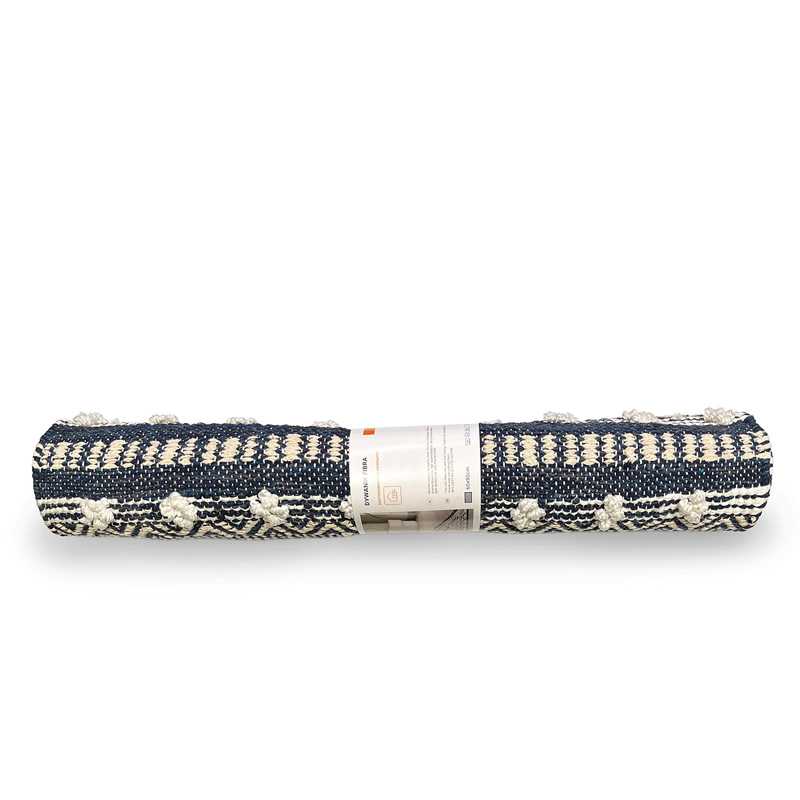 Koberec Fibra s rozmermi 60x90 cm v tmavomodrej a béžovej farbe je štýlovým doplnkom, ktorý dodá charakter a útulnosť každému interiéru. Geometrické vzory inšpirované etnickými motívmi a dekoratívna textúra robia z tohto koberca jedinečný dizajn. Je ideálny do obývačky, spálne, chodby alebo kúpeľne, zdôrazní štýl dekorácie a dodá priestoru teplo. Vyrobený z vysoko kvalitných materiálov, je odolný a zároveň sa ľahko udržiava – možno ho prať v práčke na šetrnom programe. Je to dokonalá kombinácia estetiky a praktickosti.