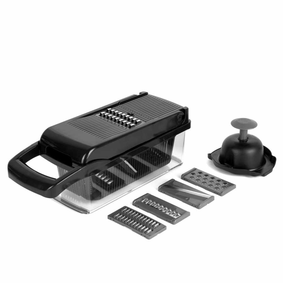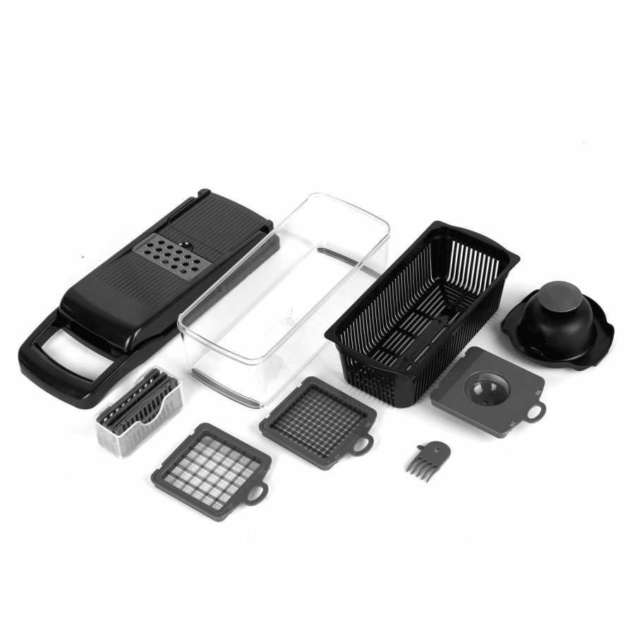 Viacúčelový, univerzálny krájač - na zeleninu, ovocie, syry a iné. Obsahuje 3 vymeniteľné nadstavce s rôznymi hrúbkami krájania.