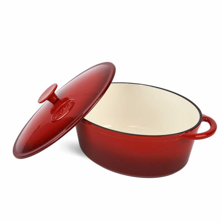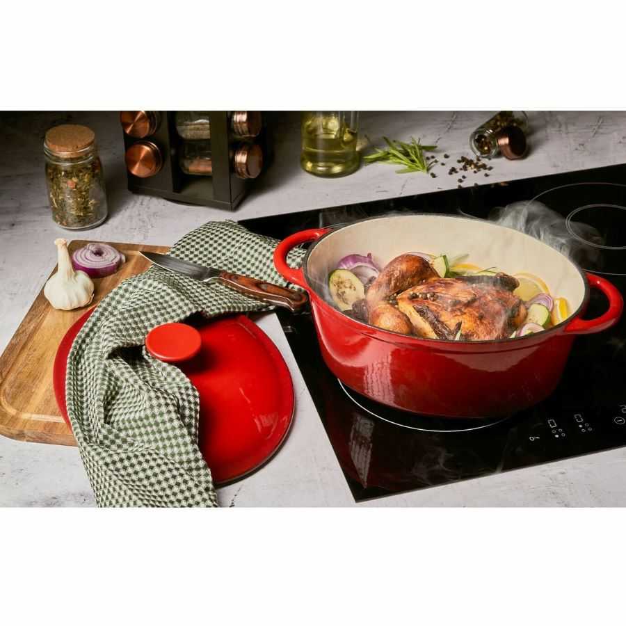 Liatinový pekáč v červenom prevedení vysokej kvality na pečenie rôznych druhov jedál a mäsa. Pekáč je vyrobený z odolnej liatiny, ktorá perfektne rozvádza teplo. Pekáč sa vyznačuje ekonomickou spotrebou energie, keďže udržuje vysokú teplotu počas dlhej doby. Dobre znáša vysoké teploty a umožňuje mnohohodinové zahrievanie. Vďaka tomu sa môže v pekáči variť na akomkoľvek type sporáka, dokonca aj na indukcii. Model je vhodný aj na pečenie - hydiny, rýb, ale aj domáceho kváskového chleba - pri teplote až do 250 stupňov C.