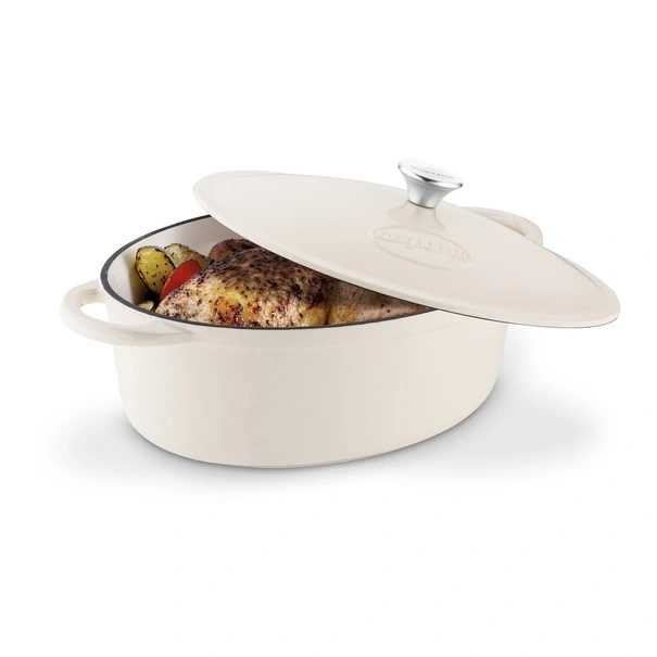 Liatinový pekáč ideálny na pečenie, dusenie a vyprážanie jedál. Pekáč je vyrobený z vysoko kvalitnej liatiny potiahnutej smaltom zvnútra aj zvonka. Vnútorný interiér v krémovej farbe. Liatinový pekáč sa vyznačuje smaltovanými držadlami a vekom.
