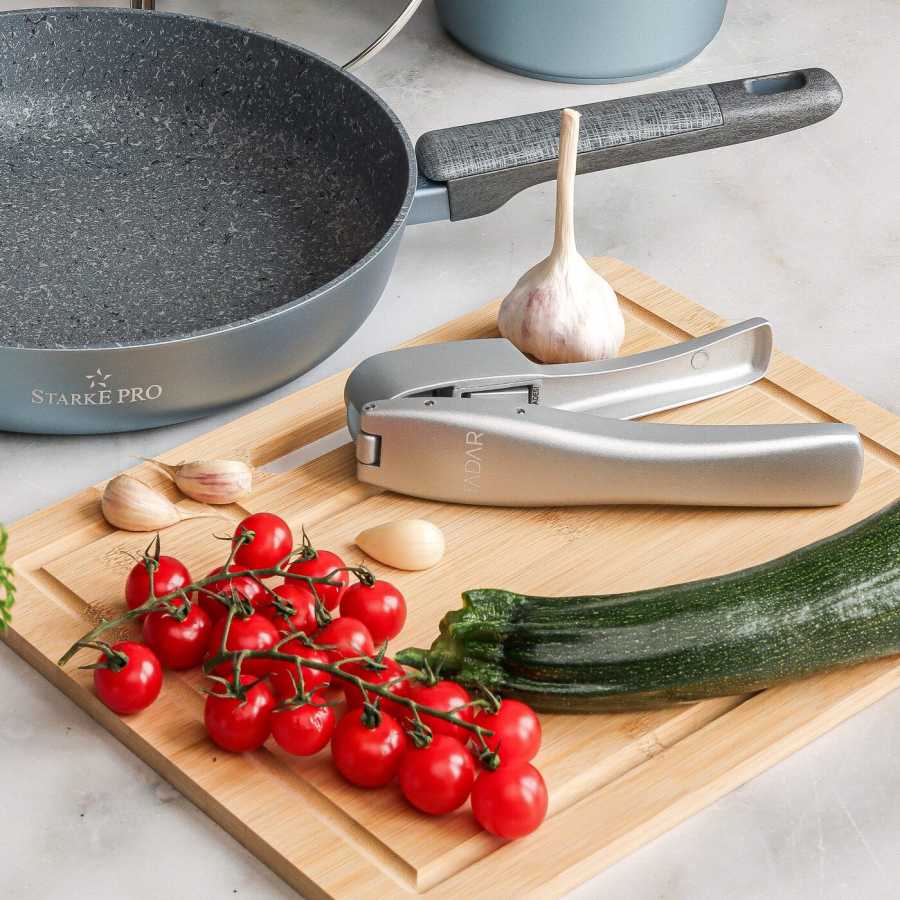 Hliníkový lis na cesnak Tadar Double - lis na cesnak s funkciou krájania na plátky
