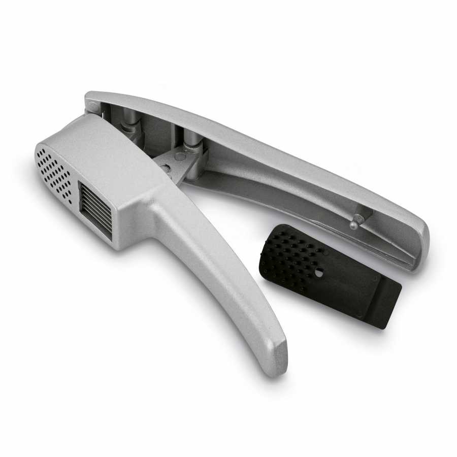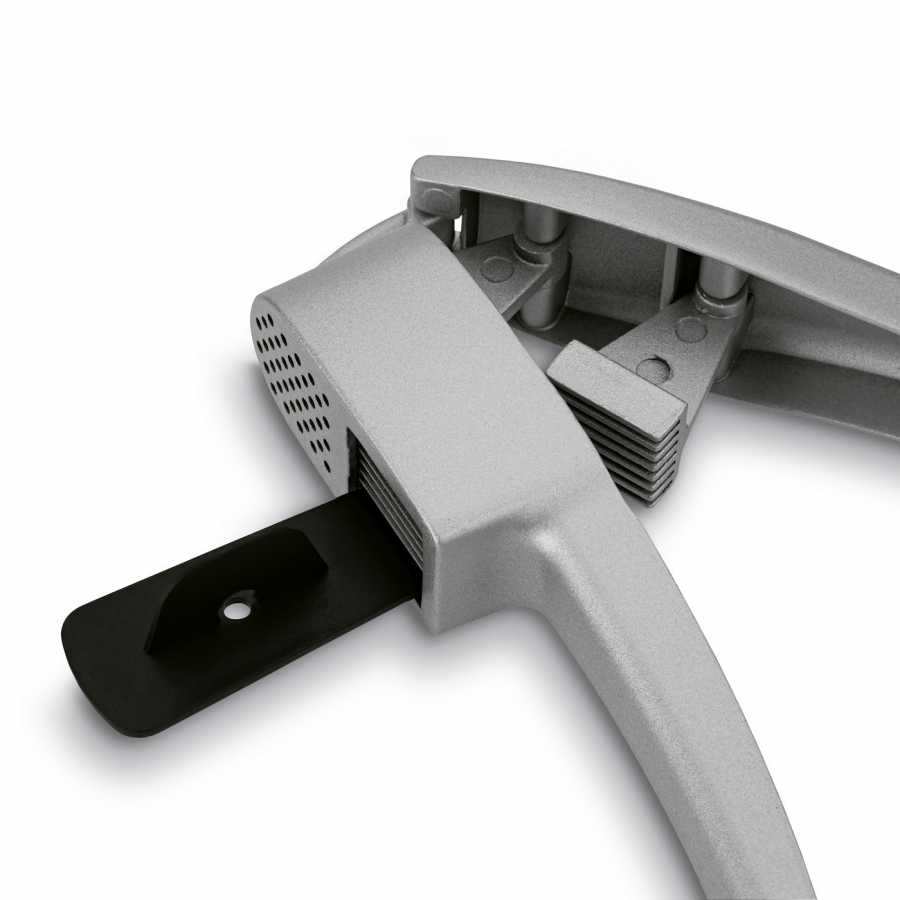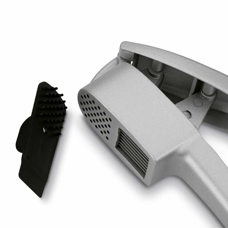 Hliníková konštrukcia lisovacieho nástroja zabezpečuje pevnosť a praktickosť. Súčasťou je aj čistič na dôkladné očistenie malých otvorov lisu. Určite je vhodné doplniť takýto nástroj do svojej kuchynskej výbavy.