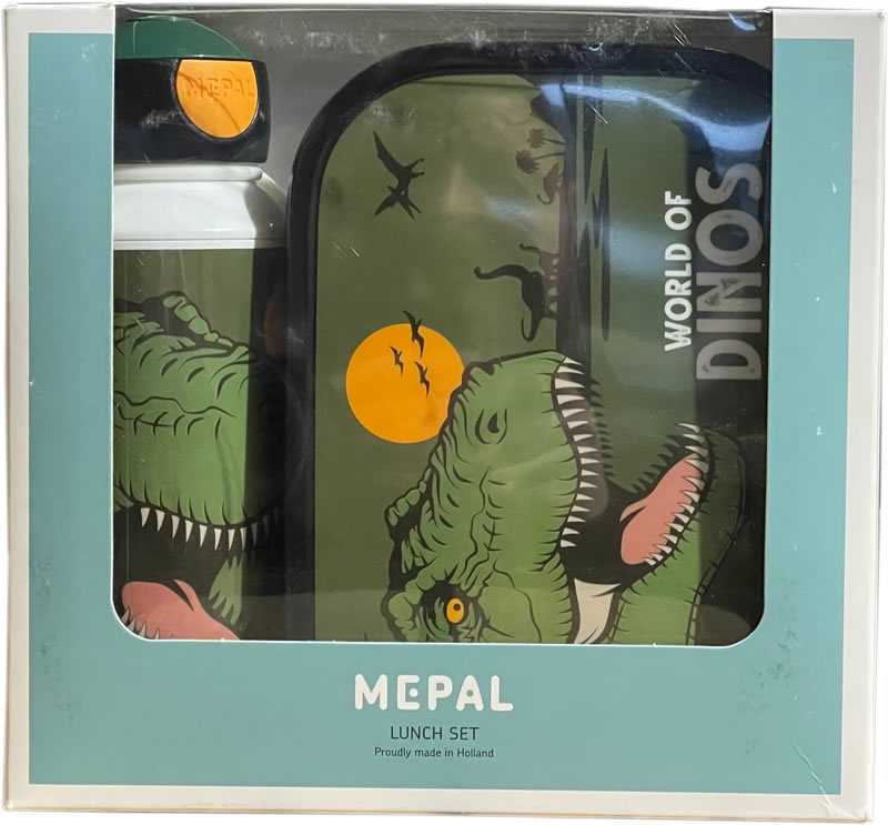 Lunch set DINO pozostáva z boxu a fľašky s motívom dinosaura. Box je ideálny na desiatu pre dieťa do školy alebo na výlet. Má aj prídavnú vložku na zeleninu alebo ovocie. Ľahko sa čistí - je vhodný do umývačky riadu, súčasťou sady je aj malá vidlička. Fľaša na vodu má hygienický, tesný výtok, ktorý sa otvára stlačením tlačidla. Zároveň má aj háčik, vďaka ktorému je možné fľašu zavesiť na batoh alebo putko na opasku. Uzáver fľaše sa otvára, čo umožňuje dôkladné čistenie. Je možné ju umývať v umývačke riadu. Fľaša sa dá použiť na horúce nápoje, ale nemá vlastnosti termosky.