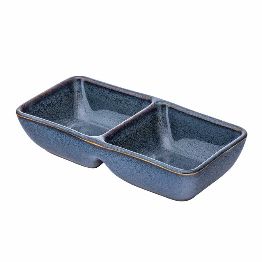 Porcelánová, vnútorne rozdelená miska na 2 časti je vyrobená z vysoko kvalitného materiálu, je bezpečná na používanie, nereaguje s potravinami. Parametre misky Farba: Tmavomodrá Materiál: Porcelán Objem misky: 160 ml Výška: 3 cm Šírka: 6,5 cm Dĺžka: 14 cm Prečo kúpiť misku Je ideálna na servírovanie dvoch rôznych občerstvení, omáčok alebo príloh súčasne. Vysokokvalitný porcelán – odolný voči poškriabaniu a vysokým teplotám. Unikátna glazúra dodáva eleganciu a jedinečný charakter každému prestieraniu.Pekný hladký povrch misky sa ľahko čistí, dá sa umýť v umývačke riadu a použiť v mikrovlnnej rúre. Servírovacia miska má moderný a elegantný vzhľad. Objem dostatočný na servírovanie dipov, olív, orechov alebo malých občerstvení. Univerzálne použitie – ideálne na každodenné jedlá aj na párty.