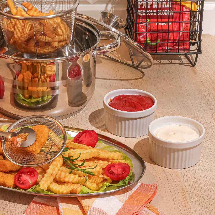 Pri varení môžete misku použiť aj na menšie ingrediencie. Produkt je vyrobený z trvácnej, smaltovanej porcelánovej keramiky. Je prispôsobený na bezpečné umývanie v umývačke riadu a zapekanie v rúre (max. 180 °C).