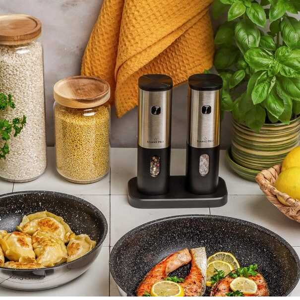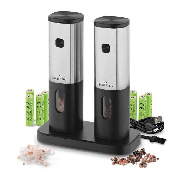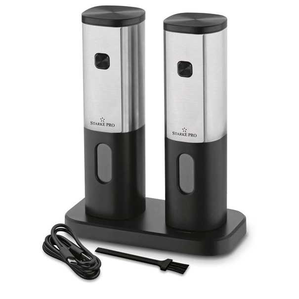 • Dva mlynčeky v sade spolu s nabíjacou základňou a USB-C káblom