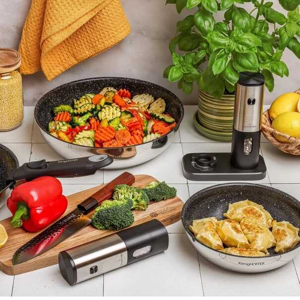 Osvetlenie priestoru na dochutenie zabezpečí komfort pri varení. Kompletný set stabilne stojí na pracovnej ploche vždy na dosah ruky, pričom je bezpečný aj pri dosypávaní korenia a soli.