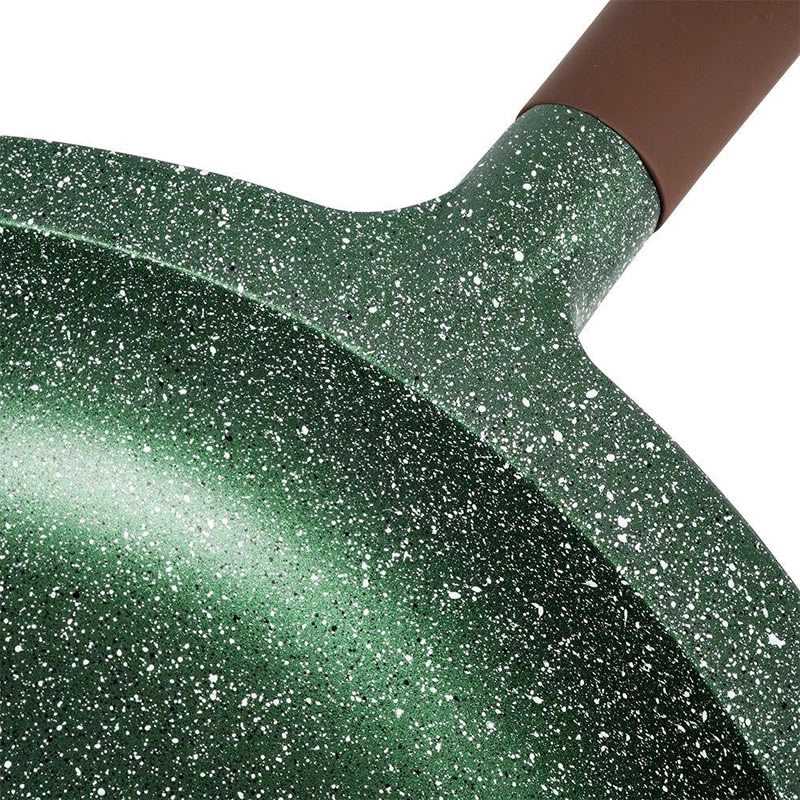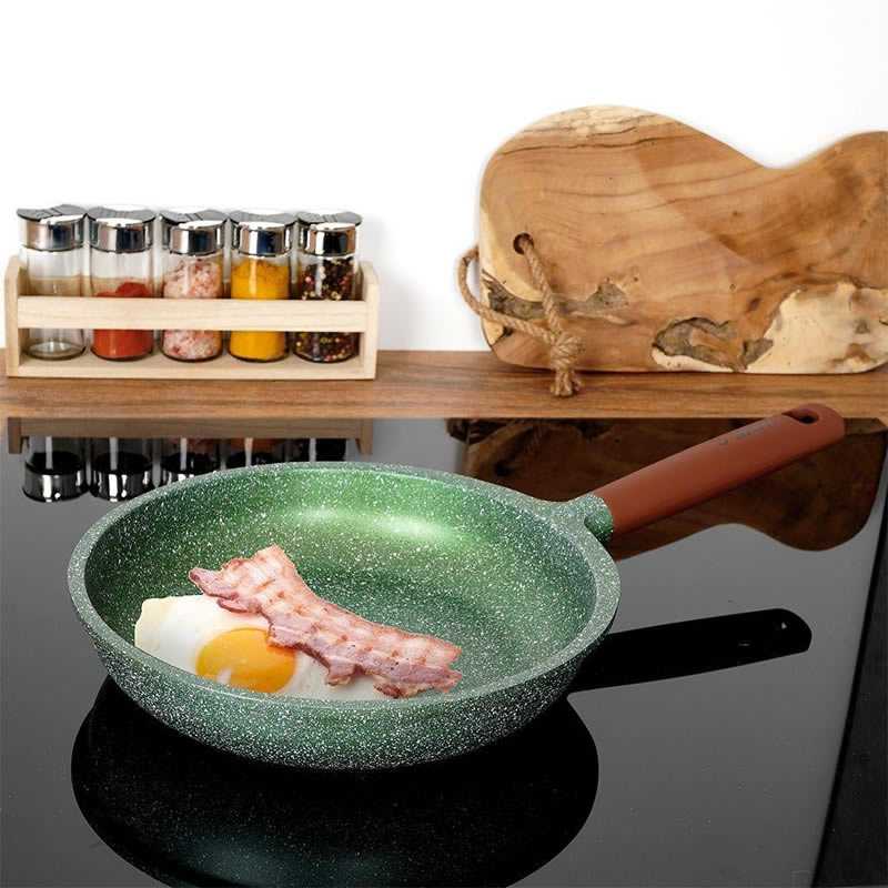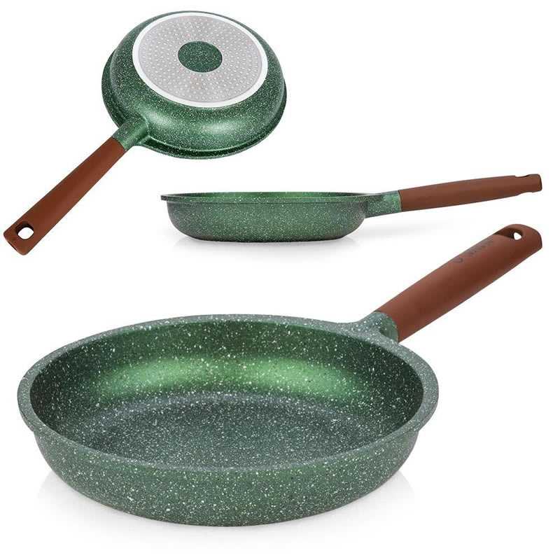 Panvica so žulovým povlakom, priemer 20 cm.Vyrobená z tlakovo liateho hliníka, s pevnou kovovou konštrukciou a ťažkým dnom, perfektne sedí na varnej doske. Panvica je tmavozelená. Rukoväť s logom v hnedej farbe. Vystužený vonkajší povrch je vysoko odolný proti poškriabaniu a jeho hladký matný povrch zaisťuje ľahké čistenie. Vnútro panvice má päťvrstvový granitový povlak, ktorý je nepriľnavý, odolný voči poškriabaniu a odolný voči vysokým teplotám. Vďaka nej dokážeme pripraviť chutné a zdravé jedlá, ktorých suroviny si zachovajú autentickú chuť a nutričné hodnoty. Použitý náter neobsahuje PFOA. Vaše jedlá budú zdravé a chutné. Panvica zaisťuje rýchle a rovnomerné vyprážanie, čo šetrí energiu. Skvele sa hodí na vyprážanie a dusenie, môžete v ňom pripraviť rôzne druhy mäsa, zeleniny alebo piecť obľúbené palacinky. Vhodná pre plynové, elektrické, sklokeramické, halogénové a indukčné sporáky. Vhodná do umývačky riadu.  - Má pohodlnú rukoväť, príjemnú na dotyk, ktorá bola špeciálne navrhnutá. Rukoväť mäkká na dotyk je odolná voči vysokým teplotám a poskytuje pohodlné a bezpečné uchopenie.