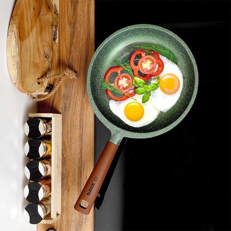 Nepriľnavá panvica s jedinečným nadčasovým vzhľadom. Panvica má krásnu, tmavozelenú farbu, vďaka čomu pôsobí v kuchyni efektne. Panvica je nevyhnutná v každej kuchyni. S jej pomocou môžeme vyprážať mäso, zeleninu, palacinky. Originálny výrobok gréckej značky NAVA z rady riadu Omega. Vyrobené podľa európskych noriem.