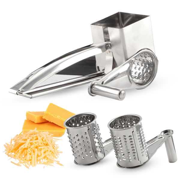 Oceľové strúhadlo s 3 strúhacími bubienkami: na syry, zeleninu aj zemiaky je neoddeliteľnou súčasťou asi každej domácnosti.Mletie je veľmi jednoduché vďaka dlhej rukoväti.