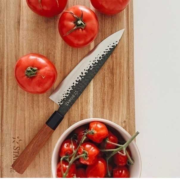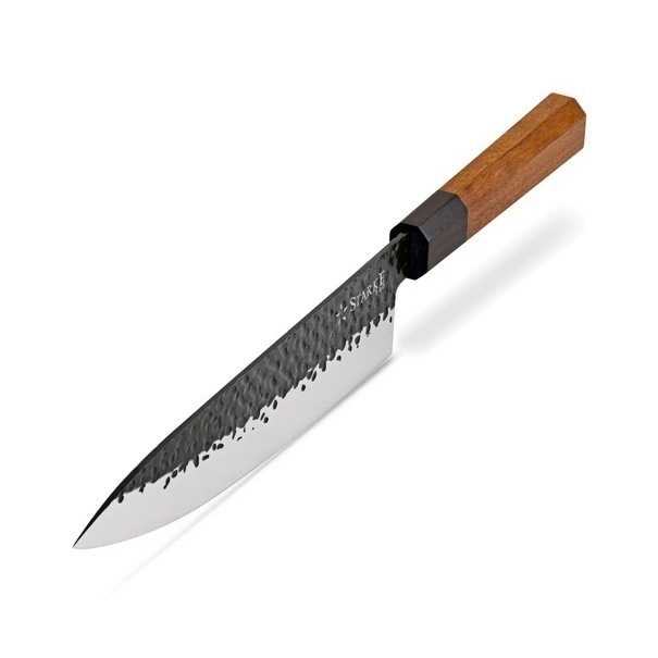 Tento ručne vyrábaný šéfkuchársky nôž Starke Pro 20 cm s vysokou kvalitou vám umožní efektívnejšiu prípravu jedál. Kolekcia ručne vyrábaných čepeľí Toshiro je ideálnou voľbou do domácej kuchyne.