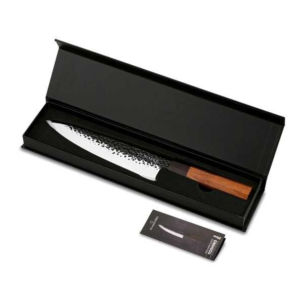 Ručne vyrobený nôž je výsledkom precíznej remeselnej práce a je veľmi obľúbený medzi nadšencami varenia. Nôž nie je vhodný do umývačky riadu. Odporúčame ho skladovať v priloženej magnetickej škatuľke.