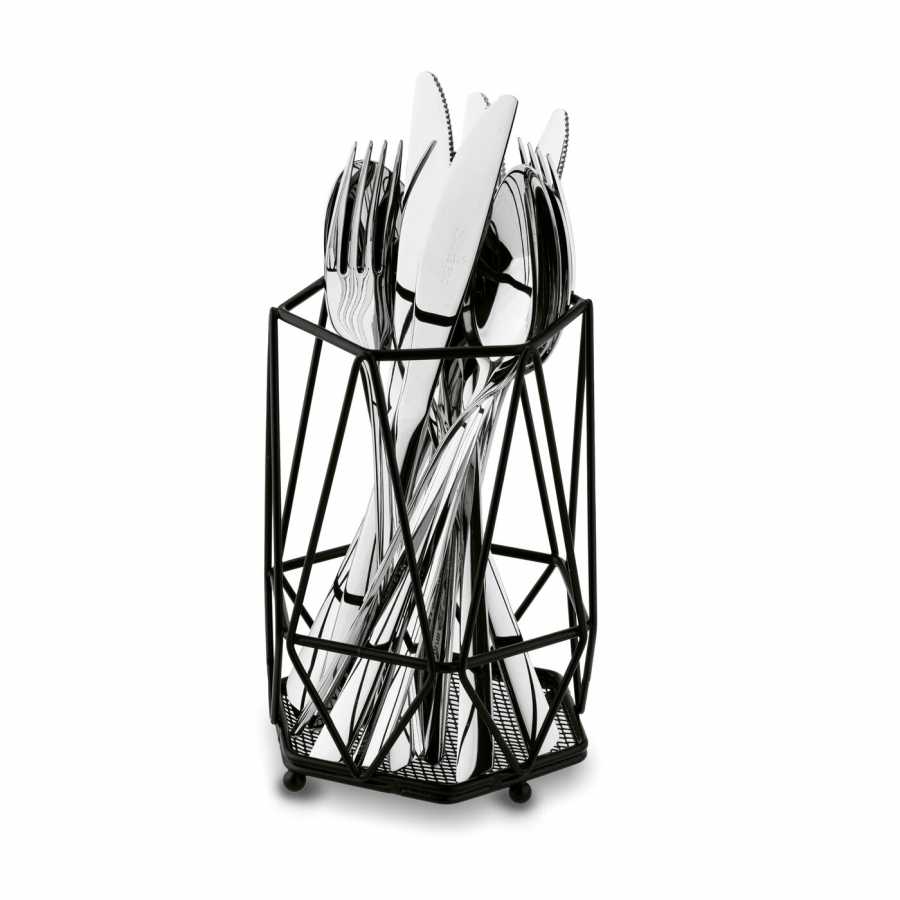 Odkvapkávač má kovovú, stabilnú konštrukciu. Je chránený čiernym práškovým lakom. Interiér modelu je rozdelený na dve časti. Drôtená základňa umožňuje ľahký odtok vody z príboru.Čierny lakovaný kov vyzerá skvele, vďaka čomu je nielen praktický, ale aj esteticky príjemný pri ručnom umývaní príborov. Model s odkvapkávačom sa vyznačuje aj geometrickým dekoratívnym motívom pre moderný vzhľad.