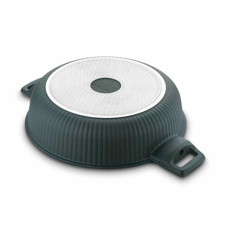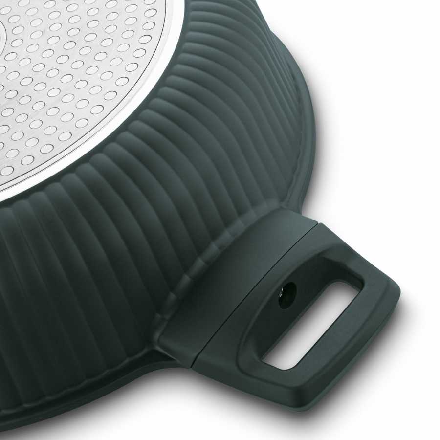 Panvica s dvoma krátkymi rukovätiami umožňuje takmer beztukovové smaženie. Nepoužíva škodlivú prísadu PFOA. Získate možnosť pripraviť ľahko stráviteľné jedlá. Nepriľnavá vrstva znamená aj jednoduchšiu údržbu nádoby. Bez problémov odstránite aj zaschnuté zvyšky bez namáhavého šúchania.Panvica funguje na každom type sporáka. Využíva feromagnetické indukčné dno. Rýchlo absorbuje teplo, preto zaručuje energeticky úsporné smaženie a dusenie. S takýmto dnom dlhšie udrží teplotu jedál. Môžete ju napríklad použiť pri servírovaní priamo na stôl.