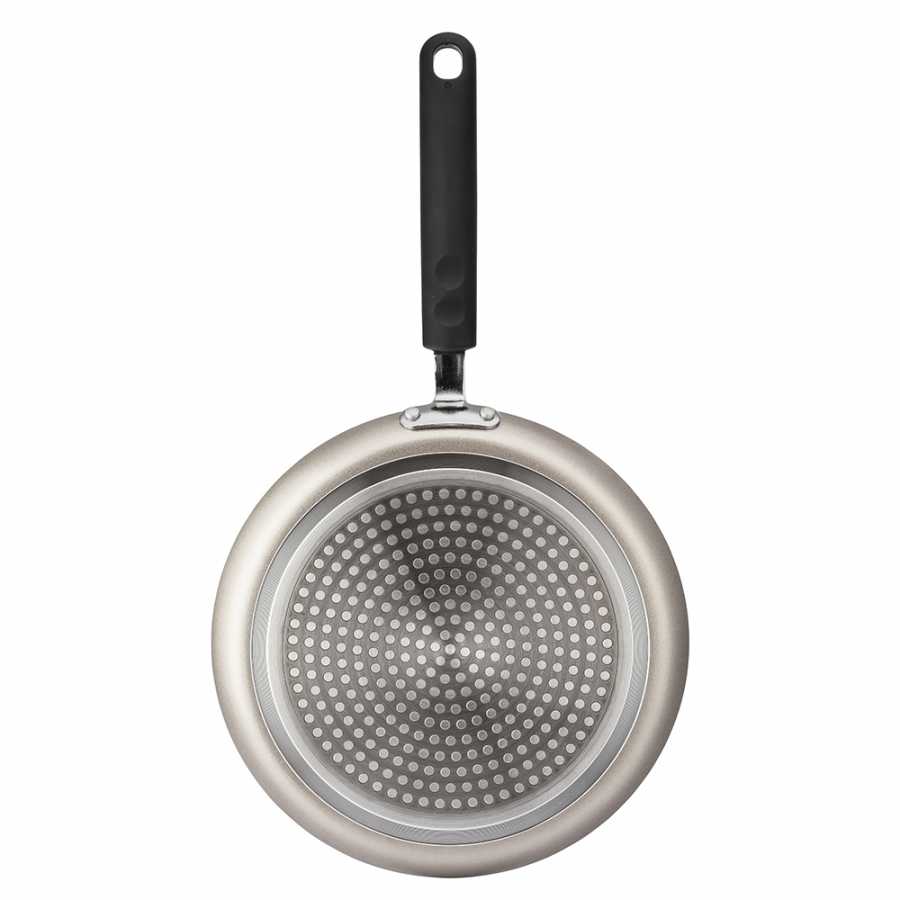 Panvica na palacinky na indukciu hliníková Valdinox Enzo 24 cm Kolekcia panvíc Enzo je kombináciou funkčnosti a estetiky, ktorá splní očakávania každého milovníka varenia. Vyrobená z odolných materiálov a má vysoko kvalitný nepriľnavý povrch, čo umožňuje zdravé vyprážanie s minimálnym použitím tuku. Ergonomické úchytky zabezpečujú pohodlné používanie a elegantný, minimalistický dizajn dokonale zapadá do štýlu súčasných kuchýň. Parametre panvice priemer 24 cm materiál hliník povlak nepriľnavá vrstva ILAG Essential použitie indukčný sporák, keramický sporák, elektrický sporák, plynový sporák dĺžka s rukoväťou 42 cm výška 1,8 cm Prečo to kúpiť Panvica je vyrobená z vysoko kvalitných materiálov, čo zaručuje dlhodobé používanie. Vonkajší povrch je odolný voči poškriabaniu a oderu, vďaka čomu si panvica dlho zachová svoj estetický vzhľad.Panvica je vybavená ergonomickým, pohodlným držadlom, ktoré nielen dobre padne do ruky, ale tiež sa počas vyprážania nezahrieva. Vďaka tomu môžeme panvicu bezpečne a pohodlne ovládať bez rizika popálenia. Vnútro panvice je pokryté vysoko kvalitnou nepriľnavou vrstvou, ktorá umožňuje vyprážanie s minimálnym množstvom tuku. Vďaka tomu sú pripravované jedlá zdravšie .
