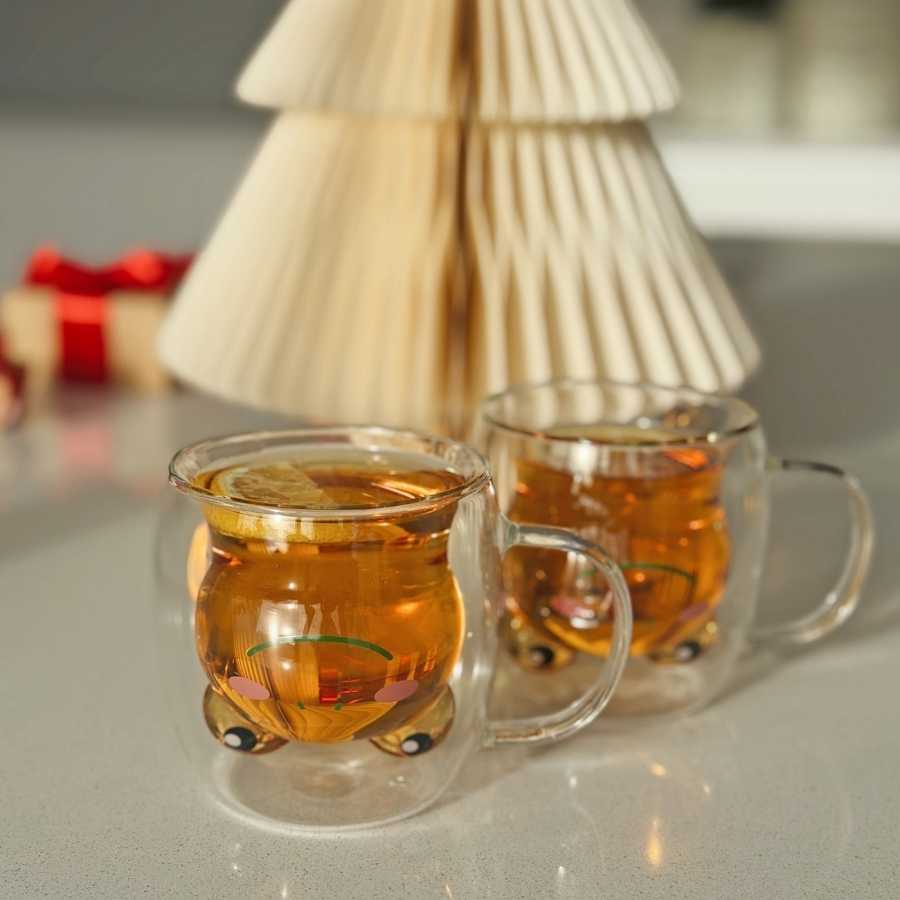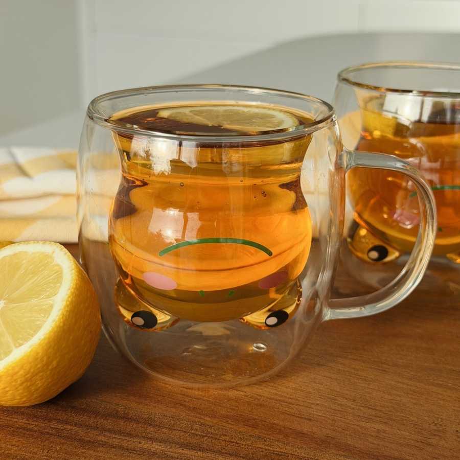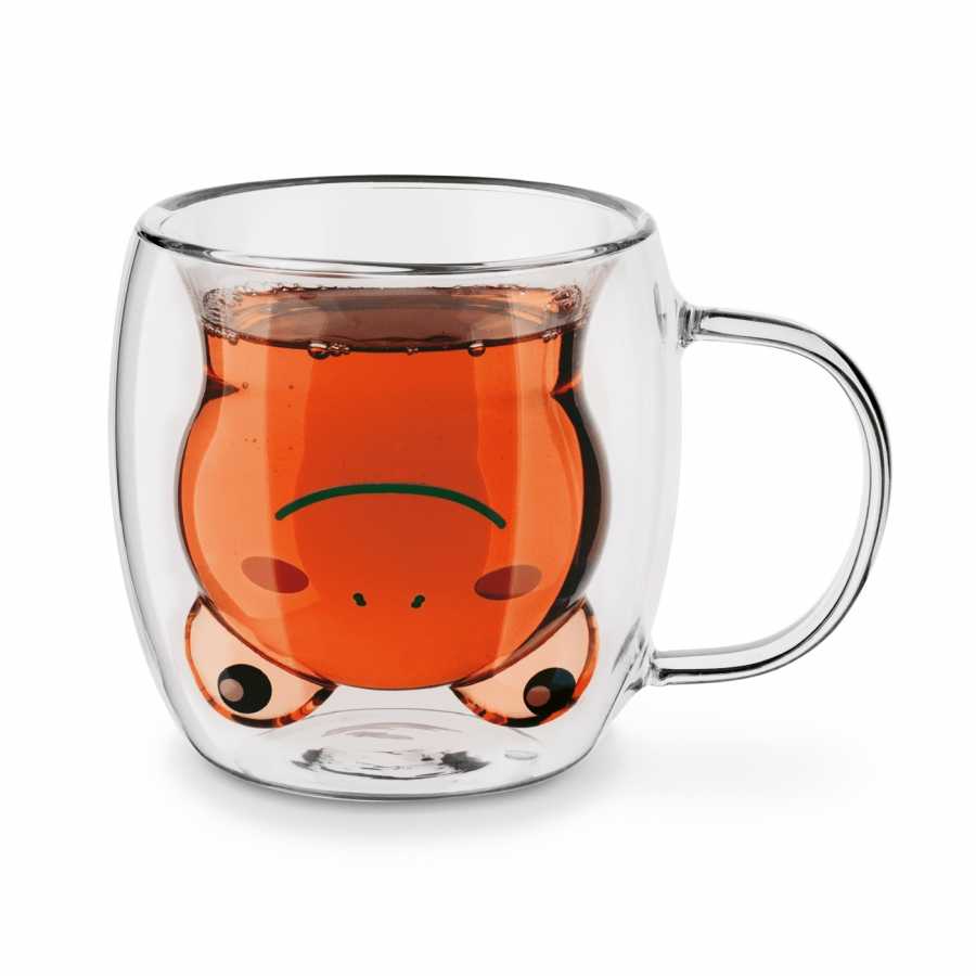 Začnite svoj deň s úsmevom! Každá príležitosť je vhodná na servírovanie lahodného čaju. Obzvlášť ak chcete ukázať svoj pozitívny prístup. Môžete to urobiť tak, že svoje studené alebo horúce nápoje vytvarujete do tvaru žabej hlavy !Dvojstenná a kryštalická konštrukcia vytvára dojem tekutiny vznášajúcej sa vo vzduchu . Horúci a chutne podávaný obsah vás nikdy nespáli. Borosilikátové sklo robí pohár ľahkým, odolným voči zmene farby a chuti a vôni. Poskytuje tiež vynikajúcu ochranu pred tepelnými šokmi , matnením a poškriabaním.