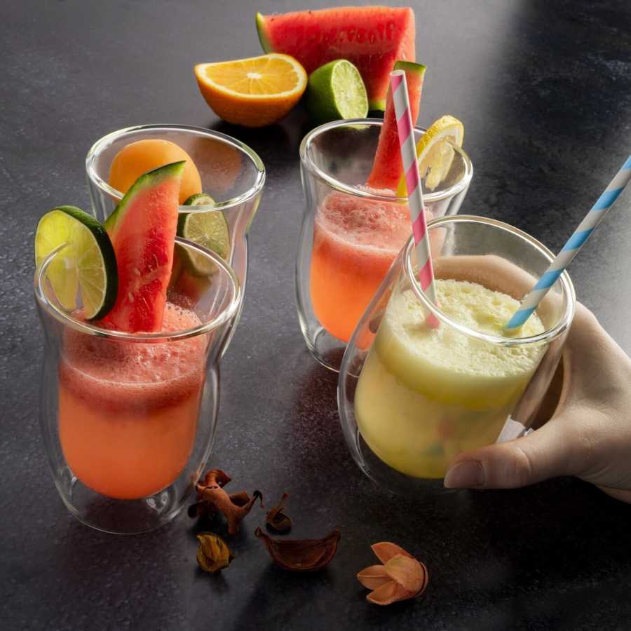 Odolné borosilikátové sklo, z ktorého sú poháre vyrobené, zaručuje roky používania. Materiál je odolný voči poškriabaniu a povrch pohárov nestráca svoj lesk. Ďalšou výhodou je ich jedinečný tvar, ktorý sa dá použiť aj na koktaily a dezerty.