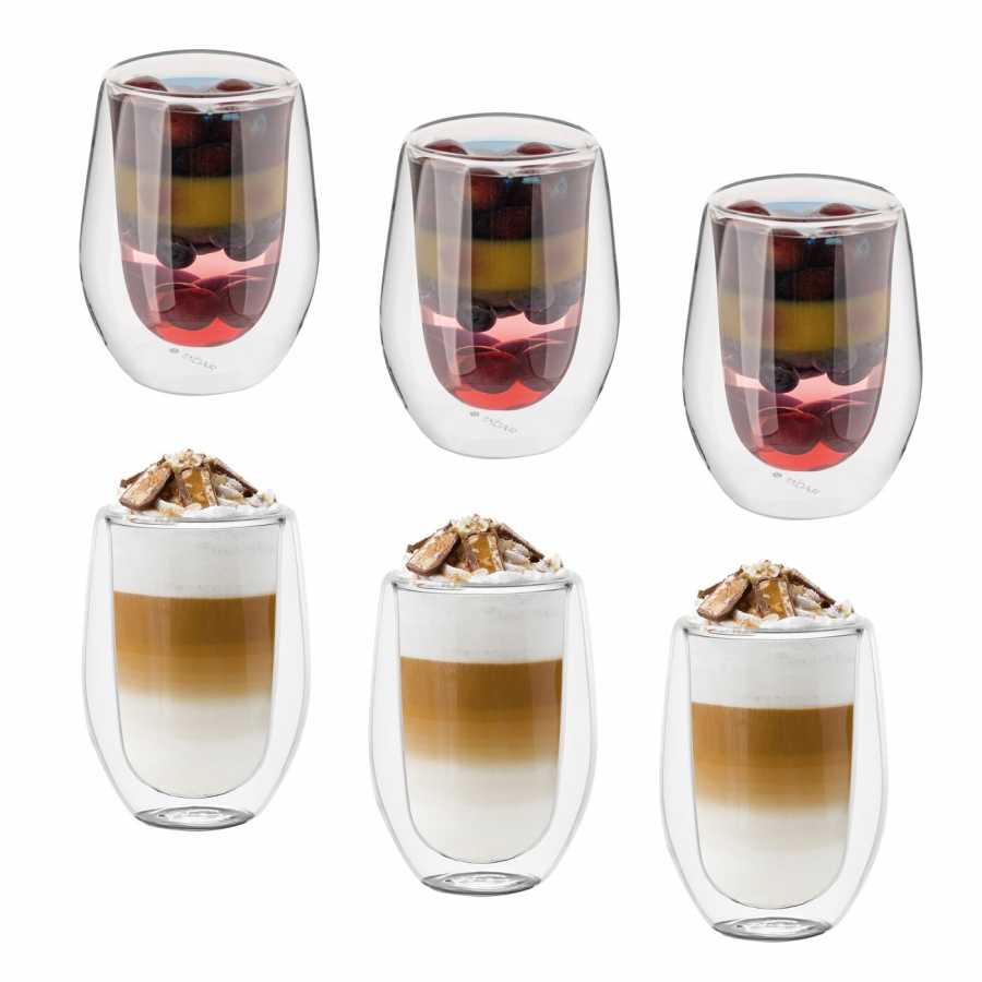 Táto verzia termo pohárov Tadar Sublime je sada šiestich pohárov s objemom 300 ml. Dvojstenný dizajn vytvára dojem, akoby káva visela v priestore, čo vám umožňuje efektívne servírovať rôzne nápoje.Sú ručne vyrobené z borosilikátového skla. Dve časti sú spojené, pričom v spodnej časti zostáva malý otvor. Vákuum vytvorené medzi dvoma stenami poskytuje vynikajúcu izoláciu. To znamená, že si budete vychutnávať horúcu kávu dlho , pričom pohár môžete pohodlne držať bez rizika popálenia. Vnútorná teplota sa udržiava vysoká, zatiaľ čo vonkajšia zostáva nízka.