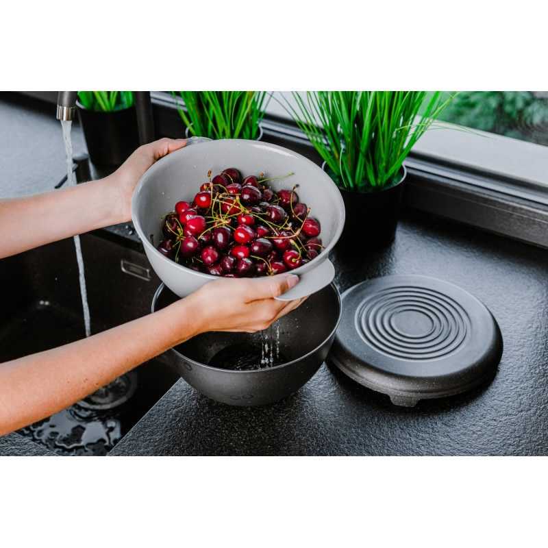 Praktický cedník s miskou 3l - sada čiernej misky + čierneho cedníka