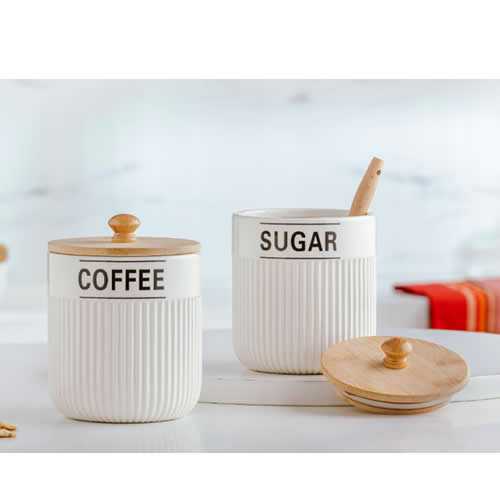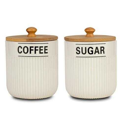 • Elegantný okrúhly tvar s praktickým označením: Coffee, Sugar