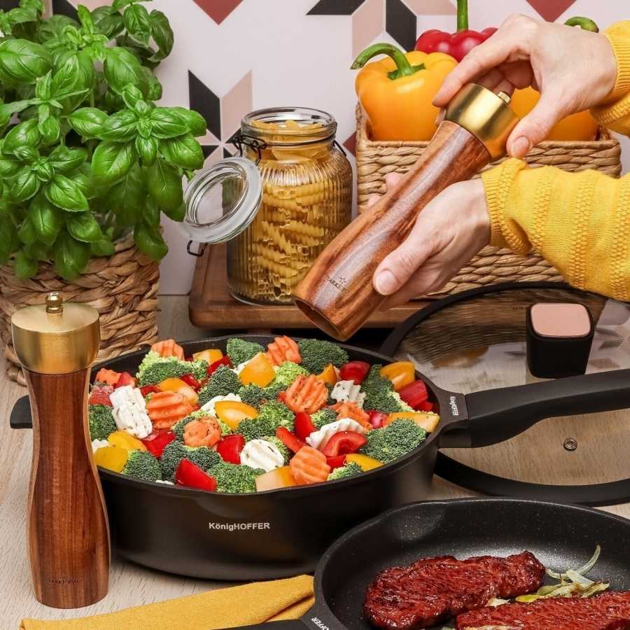 Ručné mlynčeky z akáciového dreva s keramickým mlecím mechanizmom umožňujú presné mletie soli a korenia s reguláciou hrubosti. Označenie P/S - ľahká identifikácia korenia a soli.