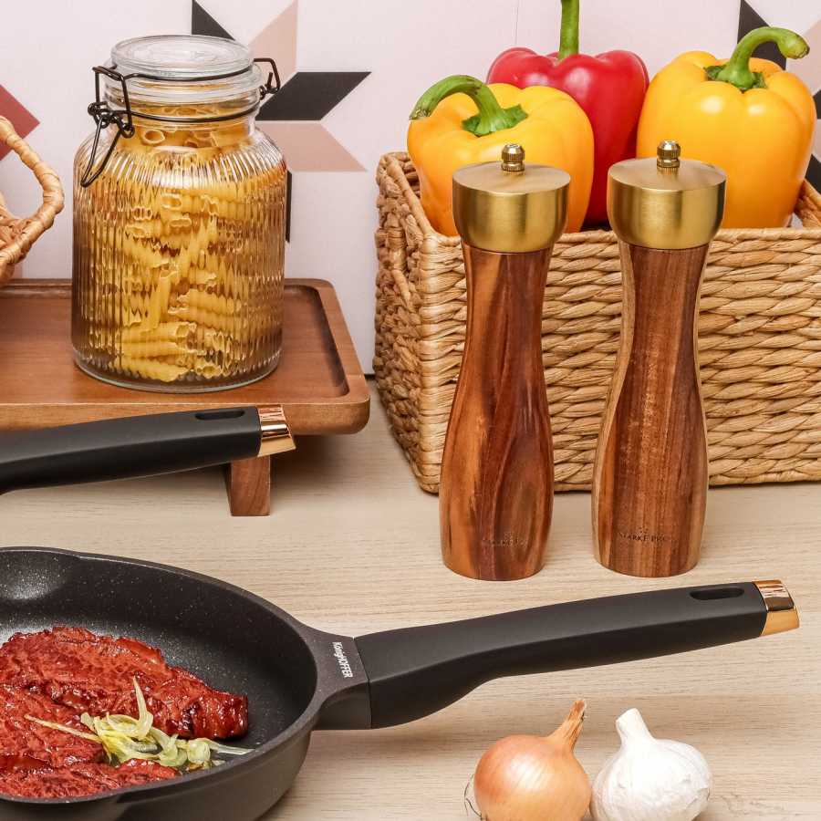 Ručné mlynčeky sú praktické a vkusne navrhnuté tak, aby vylepšili jedlá, ktorým chýba štipka soli alebo korenia.Dokonca si môžete nastaviť aj zrnitosť mletia. Praktický tvar oboch mlynčekov umožňuje pohodlné umiestnenie na dosah ruky.Táto sada mlynčekov je vyrobená z ekologického akáciového dreva . To im dodáva jedinečný vzhľad so vzormi dreva, mozaikou farieb a textúrou použitého dreva.