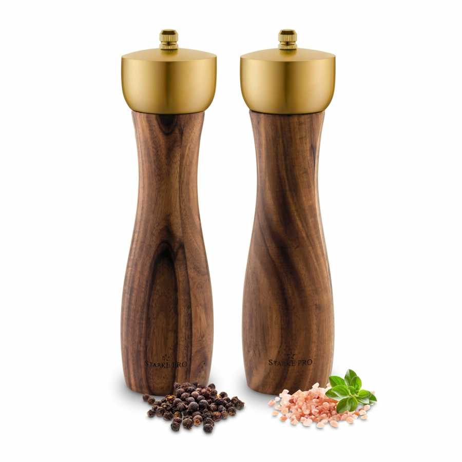 Sada mlynčekov na soľ a korenie z akáciového dreva Epirus