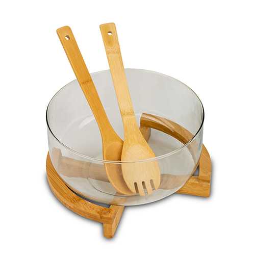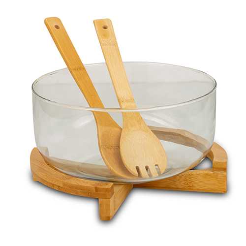 Dodajte svojmu jedálenskému stolu moderný, minimalistický nádych so šalátovou misou Terrestrial od značky NAVA. Ideálne na podávanie šalátov alebo ovocia, vhodné na každodenné rodinné jedlá alebo na zvláštne príležitosti. Vyrobené z vysoko kvalitného skla, vhodného na styk s potravinami, je doplnené 2 servírovacími lyžičkami a podstavcom z bambusového dreva, 100% ekologické.