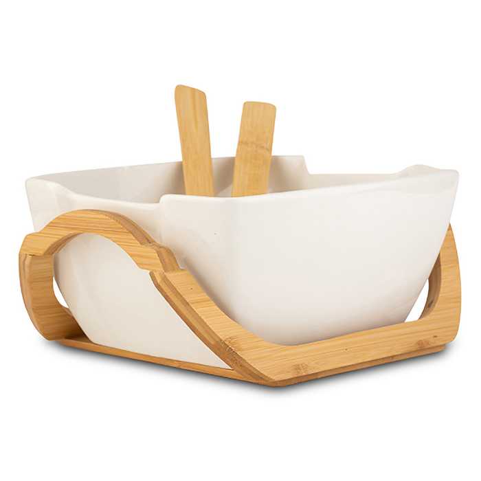 Krásne zabalená je jedinečným a praktickým darčekom pre každého. Vyrobená z vysoko kvalitného porcelánu bezpečného pre potraviny, dodáva sa s dvoma servírovacími lyžičkami a bambusovou základňou, vďaka čomu je 100 % ekologická.Porcelánová miska je vhodná do umývačky riadu.