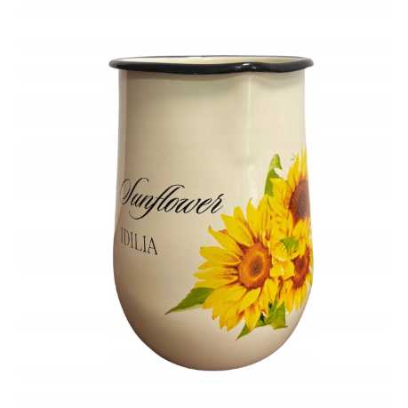 Smaltovaný džbánok je odolný a praktický riad, ktorý je ideálny do každej kuchyne a na turistické výlety. Celok je vyrobený z kvalitného smaltu, vďaka čomu je džbánok odolný voči mechanickému poškodeniu a deformácii. Smalt je navyše zdravotne nezávadný, takže môžete bez obáv použiť džbánok na pitie alebo jedlo. Umožňuje pripraviť viac jedál a nápojov. Parametre smaltovaného džbánku: Vzor: Slnečnica Priemer: 15 cm Výška: 20 cm Objem: 2,5 l Prečo kúpiť smaltovaný džbánok: Hladký povrch džbánku s krásnym bilinkovým vzorom sa ľahko udržuje v čistote a neabsorbuje pachy a farby, takže vždy vyzerá esteticky.