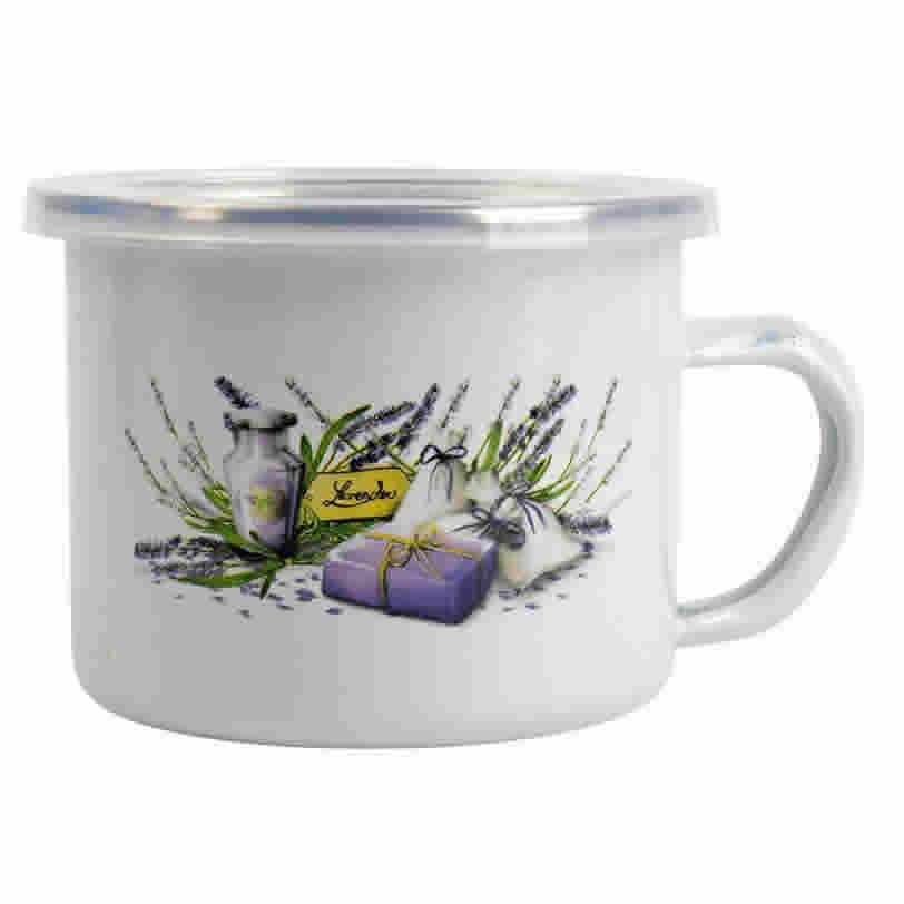 Smaltovaný hrnček s pokrievkou 0,5L 10cm Levanduľa