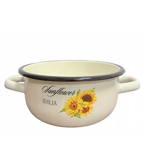 Smaltovaný randlík s dvoma uškami 1,5 l slnečnica