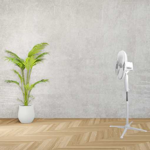 Stojanový ventilátor ideálny na horúce dni pri práci alebo štúdiu. Ponúka 3 režimy rýchlosti, aby sme si mohli nastaviť silu prúdenia vzduchu. Zariadenie v bielej farbe dokonale zapadne do okolia.Vďaka aretácii oscilácie si môžete zvoliť, či bude prúdenie vzduchu smerované jedným smerom alebo rozložené po celej miestnosti. Nastavenie výšky umožňuje prispôsobiť ventilátor vašim potrebám. Stabilné nohy zabezpečujú spoľahlivé upevnenie zariadenia.Vďaka extrémne tichej prevádzke je ventilátor ideálny na použitie v kancelárii alebo spálni.